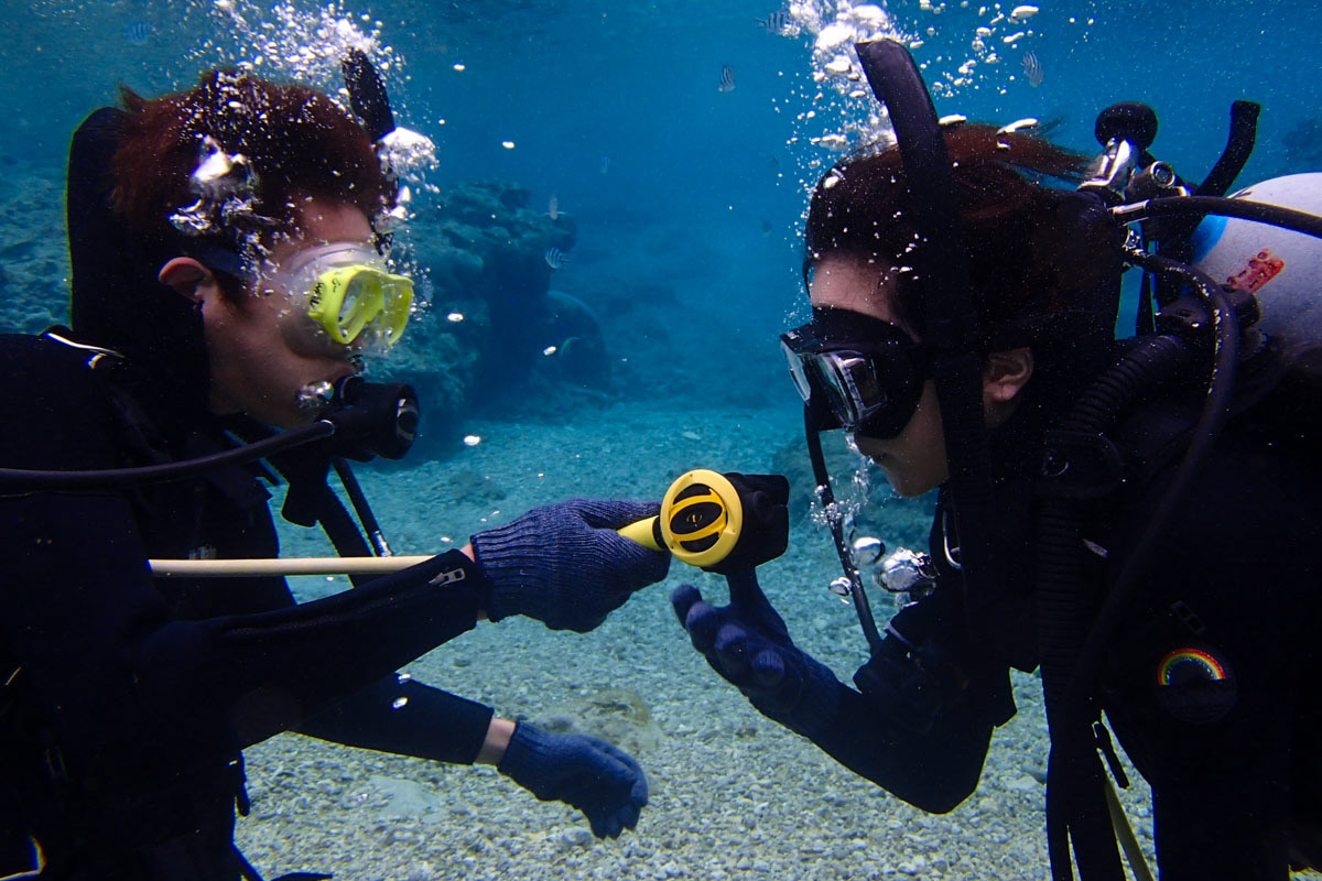 ツアーのアシスタントとして参加者のエントリー補助、器材チェック、海況確認、ロギング、写真撮影サポートなどを経験することで、教科書では学べない細かな対応力が身につきます。